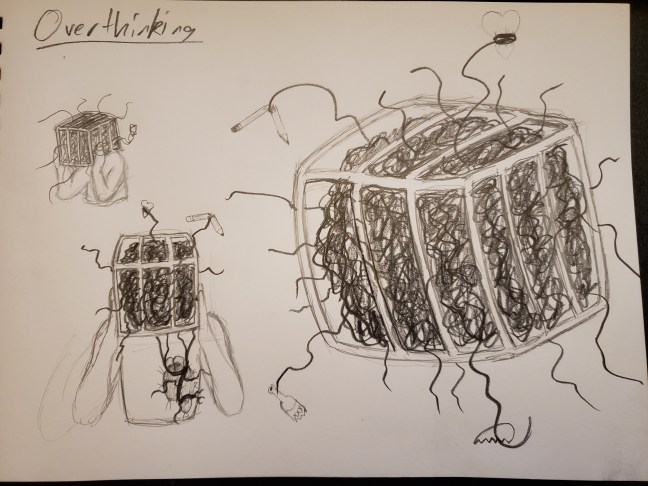 Overthinking is a common trait amongst people in today’s society. Overthinking leads to increased stress, unrealistic assumptions and expectations, and in too common of situations, suicide. Overthinking is simply defined as “think about something too much or for too long” but it is more than that. It becomes a fixation and it feels as though … Continue reading Overthinking Sketches